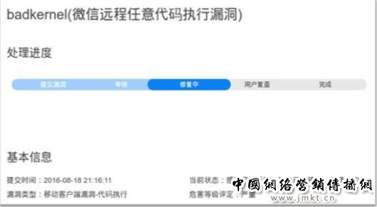 近日,360手机卫士阿尔法团队(Alpha Team)独家发现微信远程任意代码执行漏洞,将其命名为badkernel。360手机卫士阿尔法团队发现,通过此漏洞攻击者可获取微信的完全控制权,危及用户朋友圈、好友信息、聊天记录甚至是微信钱包,可使上亿微信用户受到影响,危害巨大。