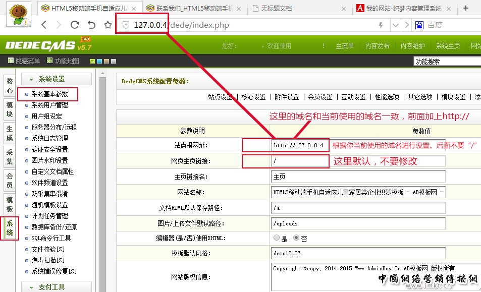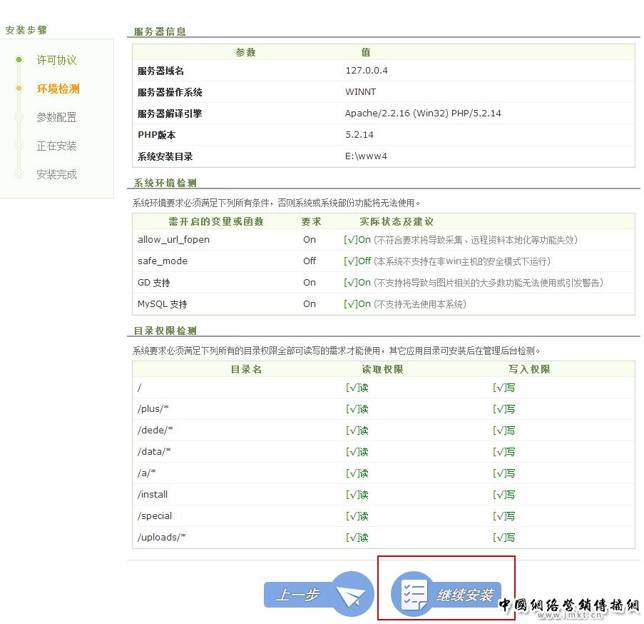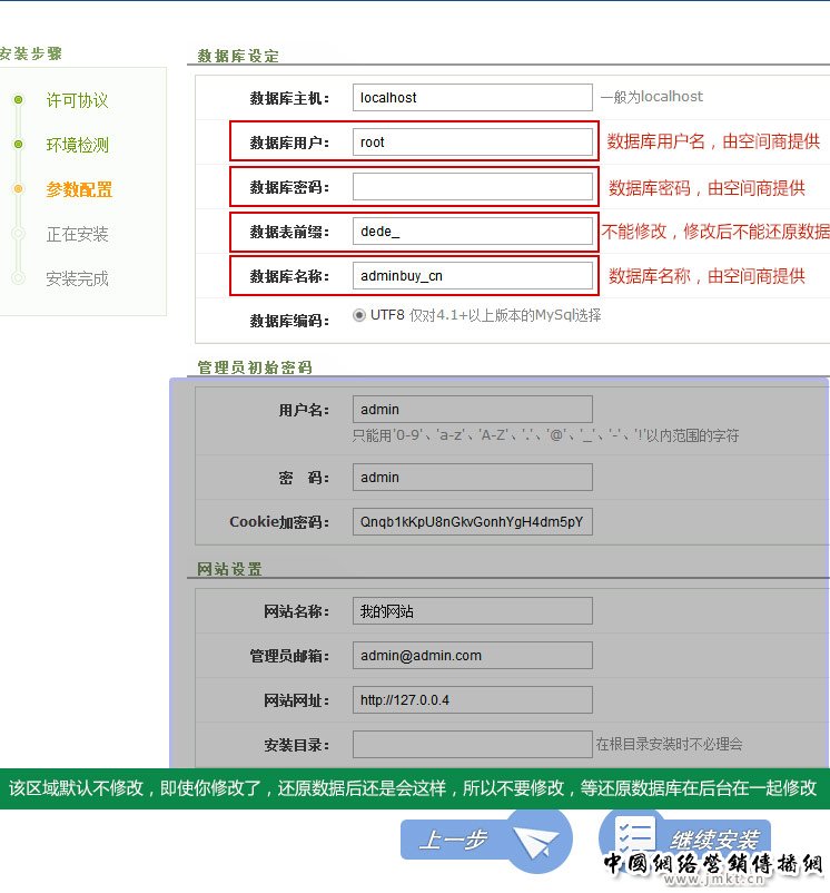 我们来继续下一步(设置网站系统参数)操作:这是最关键的一步