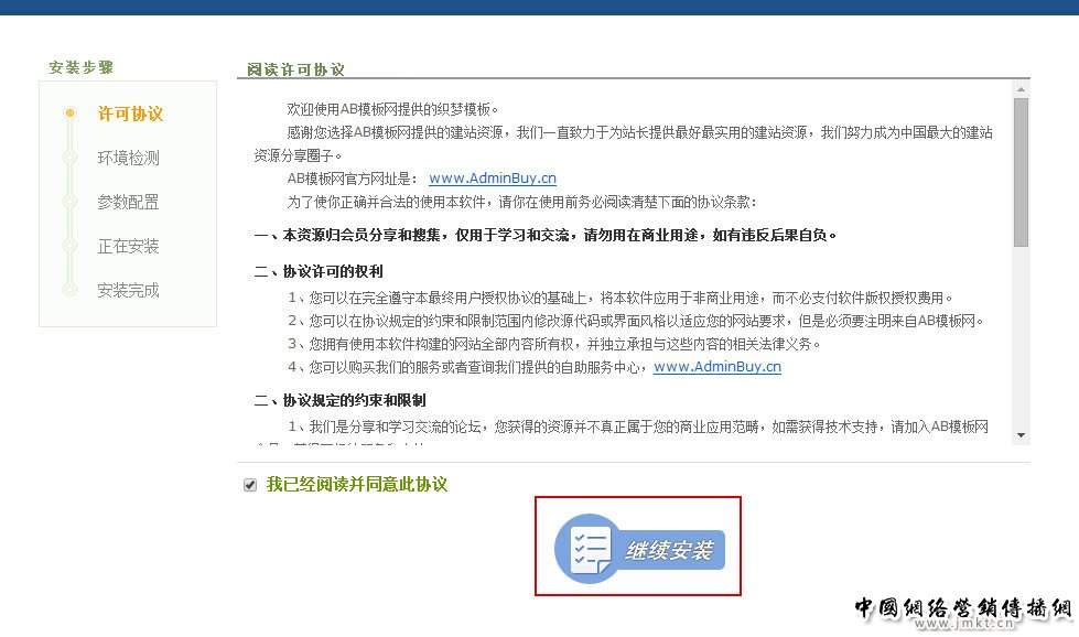 如果输入 http://www.**.com/install/index.php 直接跳出安装界面了,那么我们正式开始安装,