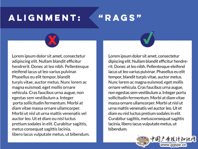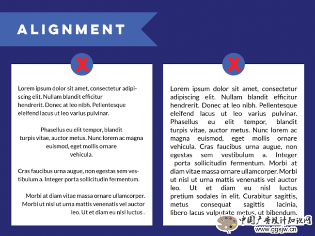 设计原则中,对齐是最重要的几项之一。对齐会让文字排列有序而合理,视觉上统一而一致。不同的对齐方式混合在一起会产生随机的间距,难看且阅读困难。