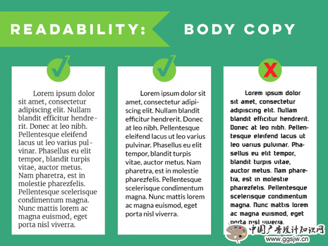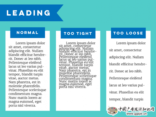 行间距也是影响可读性的重要因素,过于紧凑会难于识别,但是一味地拉开间距在视觉上的效果并不合理。一般行间距是行高的50%左右。