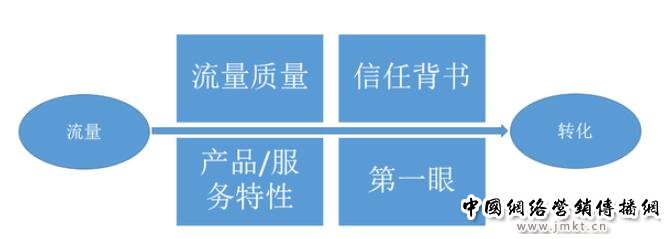 以直接效果为目标的流量,转化可能受到四个因素的影响,